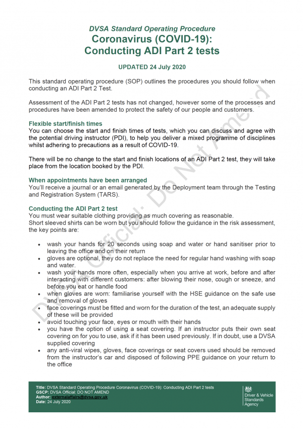 Because the focus of these changes are designed to reduce the period of exposure and time spent in an enclosed vehicle, every effort must be made to keep the main body of the assessment ‘wheels moving’ (and vehicle well ventilated) . Therefore a beginner or static lesson is NOT acceptable. The Examiner will not conduct the test and your fee will be lost if you present with a beginner.